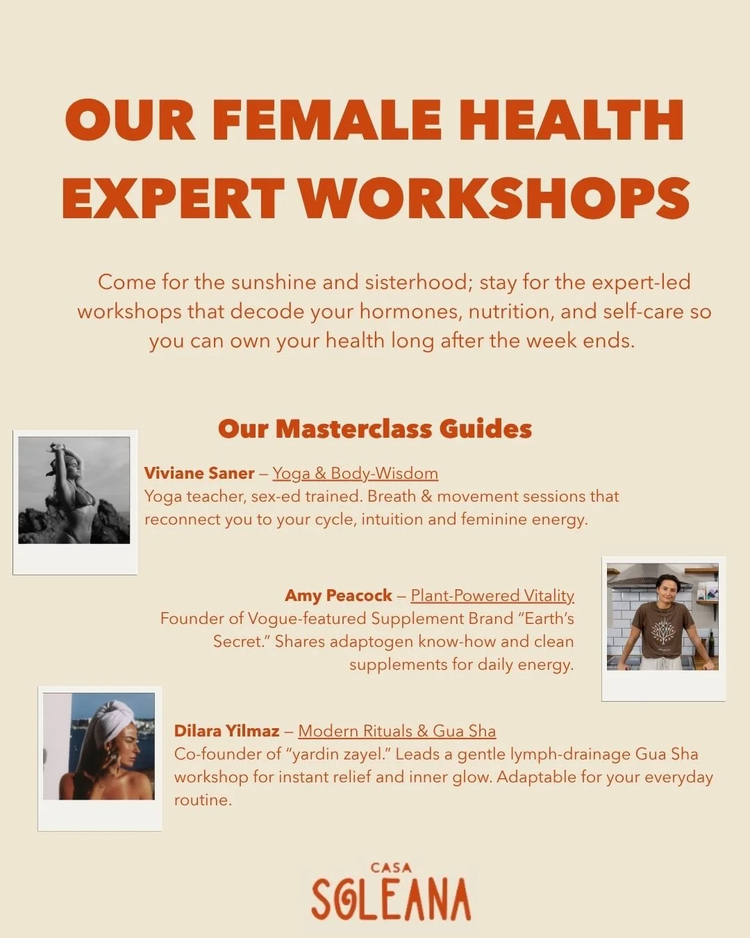Expert workshops on women's health, bodies and longevity
